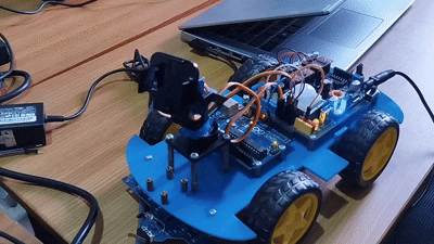 Kedua servo diatur agar bergerak secara bertahap, sehingga pergerakan yang dihasilkan terlihat lebih natural dan tidak kaku.